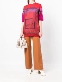 heritage-print long T-shirt multicolour virgin wool colour-block panelled design all-over graphic print round neck short sleeves straight hem Made in Italy Composition Virgin Wool 100% SIZE & FIT Model measurements Height 5 ft 9 in(1.74 m) Bust/Chest 31.49 in(80 cm) Hips 35.43 in(90 cm) Waist 24.8 in(63 cm) FittingInformation This piece fits true to size. We recommend you get your regular size Cut for an oversized fit Washing instructions Machine Wash