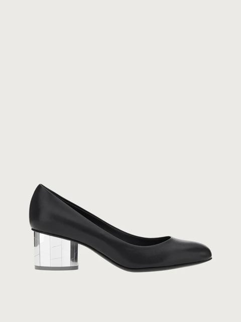They call her Florenza, and she is one of the most sensual shoes to grace the catwalk. A stunning, feminine piece, bursting with high octane glamour and heritage inspiration. A high frequency laser technique is used to cut the Gancio into the leather upper, which envelops the foot for a secure fit. The mirror effect column heel confirms a glamourous look to which the jagged cracks add a gritty, modern edge. - Heel 10,5 cm - Composition: lamb nappa - Made In ITALY