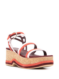75mm Mysen wedge sandals Watch out, step trackers. Set atop a comfortable wedge sole, these Salvatore Ferragamo sandals will provide the elegance of a pair of pumps with the comfort of a pair of sneakers. 1.000+ steps a day will be a breeze. Highlights - White/brick orange - Leather - Strap detailing - Branded insole - Open toe - Buckle-fastening ankle strap - Cork platform sole - High wedge heel Made In Italy Composition Outer: Leather 100% Lining: Leather 100% Sole: Leather 100% SIZE & FIT Measurement CIRCUMFERENCE 9.44 in(24 cm) HEEL 2.95 in(7.5 cm) HEIGHT 2.75 in(7 cm) PLATFORM 1.96 in(5 cm)