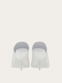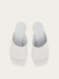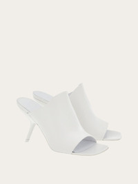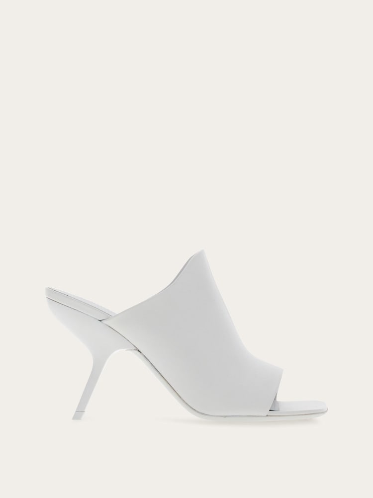 An understated edge and sensual lines define these new Ferragamo sliders. Crafted from ultra-soft nappa, they feature a wide band on the instep of the foot, contoured to go with the silhouette. The square toe pairs beautifully with the slanted, sculptural heel boasting lines inspired by our iconic F wedge. - Heel 8,5 cm - Composition: nappa - Made In ITALY