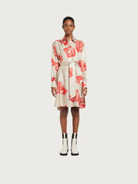 Breeze through the summer in this new take on the shirt dress. Ideal for the lady with a taste for off-duty style, it is made of pure silk and lit up by a modern twist on the Poppies print. The shirt collar and breast pocket perfectly balance the relaxed feel of the floaty silk, which is cinched at the waist by a removable, tonal belt. Unlined for sheer lightness, with side slits that add definition to the outline. Model measurements: Height 5' 10"/178 cm; Bust 31½"/80 cm; Waist 23½"/60 cm, Hips 35"/89 cm - Composition: 100% silk - Made In ITALY