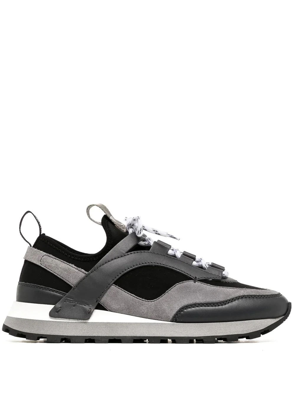 pull-on low-top sneakers black/grey/white leather colour-block panelled design front lace-up fastening double pull-tab at the opening round toe branded insole flat rubber sole Made in Italy Composition Outer: Calf Leather 50%, Fabric 50% Lining: Leather 100% Sole: Rubber 100% SIZE & FIT Measurement HEEL 1.18 in(3 cm) Sole height 0.78 in(2 cm) Washing instructions Do Not Wash/Do Not Dry Clean