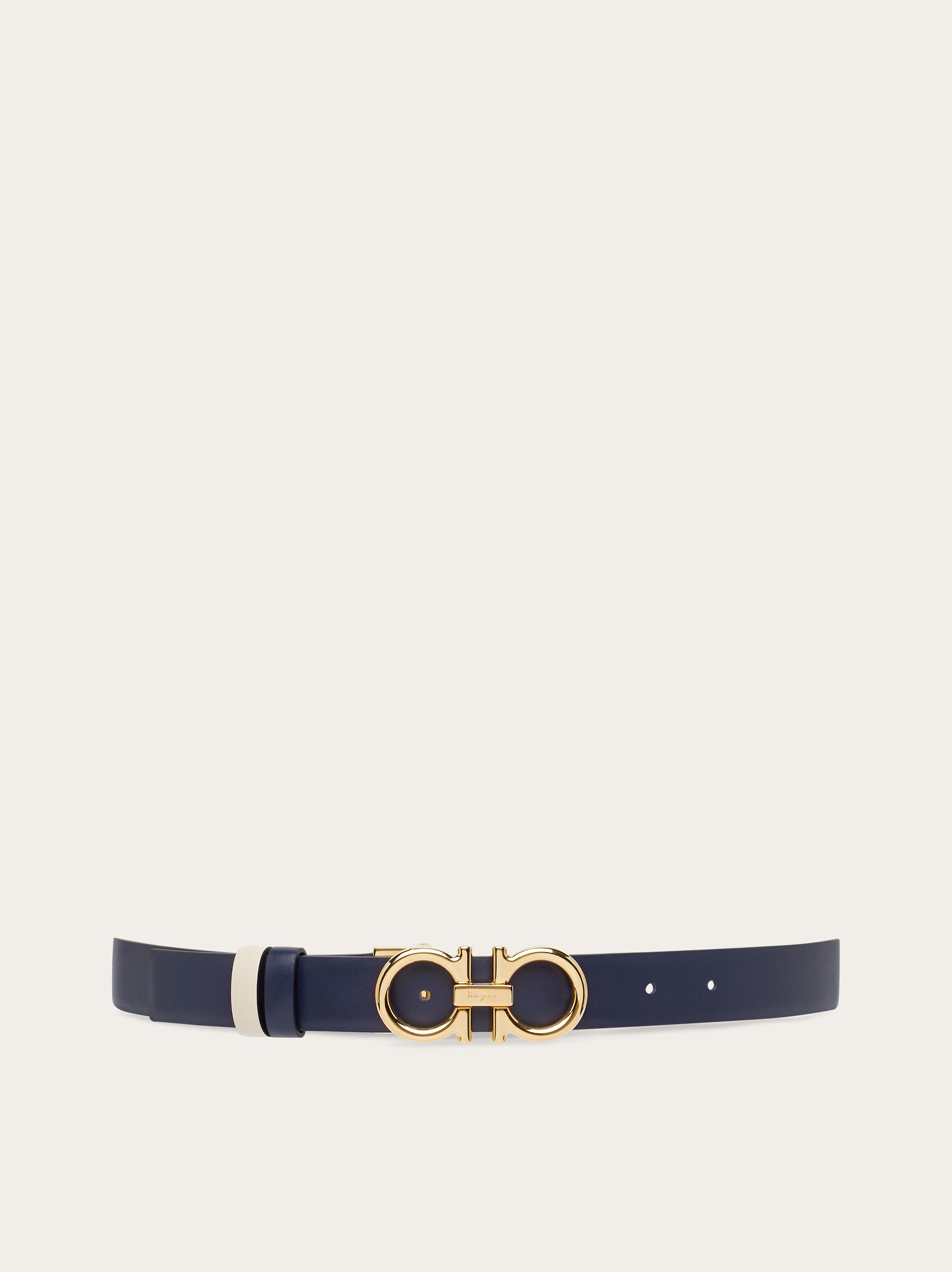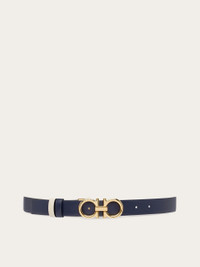 The iconic Ferragamo belt with a slim profile and reversible dual tone shaft for versatile styling. The natural grainy finish of the leather is complemented by a rounded Gancini buckle and double loops. The adjustable length provides for a custom fit. We invite you to check our size guide for more information. - height 0.9 IN - Composition: calfskin - Reversible and adjustable belt with detachable buckle - Made in ITALY - Product code: 23B559 764048