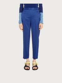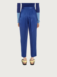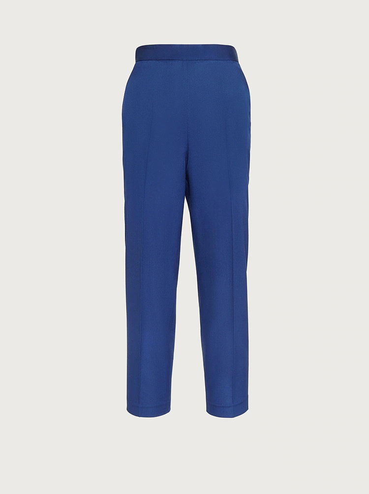 These cropped trousers are the perfect companion to add a posh flair to everyday looks. The double ironed crease creates a tapered leg, with a tailored effect, emphasized by the masculine cut of the waist band. The hidden side zip and inserted pockets keep the outline clean. Model measurements: Height 5' 9½"/176 cm; Bust 30½"/78 cm; Waist 23½"/60 cm; Hips 34½ "/87 cm - Composition: 100% silk - Made In ITALY