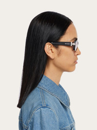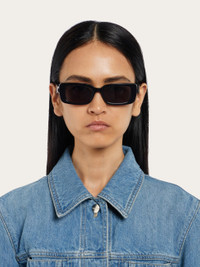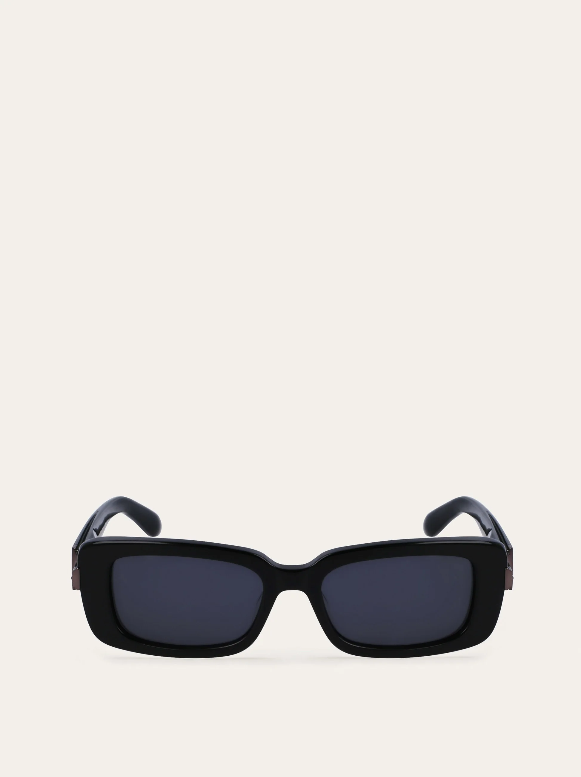 Rectangular frame sunglasses.These stylish sunglasses enrich the new Gancini Evolution family and are characterized by an acetate construction, bold rims and a vintage shape.The Gancini-shaped metal plaque houses the hinge, while the extruded Gancini acts as an end-piece.Solid lenses, matching or in contrast with the acetate construction, complete the look for a modern attitude. - Composition: acetate - Anti-UV, anti-scratch lenses - Global fit. Lens-nose-temple sizes: 52-17-135 mm - Frame compatible with graduated lenses - Made in ITALY - Product code: 51G105 771794