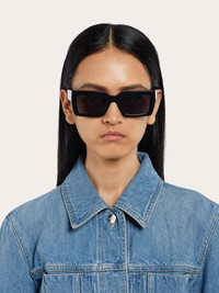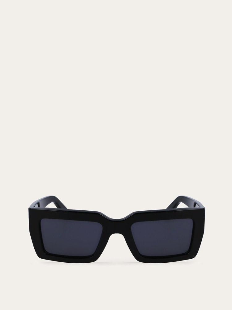 Rectangular frame sunglasses. Part of the Classic Logo family, these sunglasses feature a full-acetate construction with a bold frame announcing the new modern and stylish feminine look. The thick temples are characterized by a visible metal core wires and embellished by the new Ferragamo logo. Global fit. Anti-UV, anti-scratch lenses. Lens-nose-temple size: 54-21-140 mm. Frame compatible with graduated lenses. - Composition: acetate - Made In ITALY