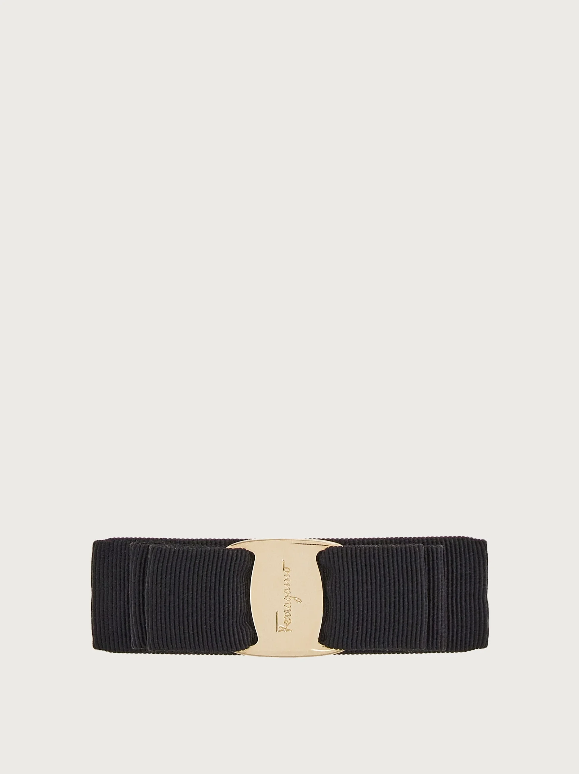 This hair clip is embellished with the iconic Vara bow in grosgrain. The gold-tone plate and Ferragamo logo add a bright and elegant touch to everyday outfits. - Composition: grosgrain - Made in ITALY - Product code: 342019 495450