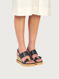 Summer simply would not be summer without a cork wedge. Add these to your summer wardrobe for a pop of femininity with a touch of contemporary grit. The soft lamb nappa leather is constructed in a double strap that wraps the foot and an adjustable heel strap, rounded toe and internal, tonal leather sole. The cork wedge is has a unique structure, and sits on a plateau to offer a height of 8.5cm. - Heel 5,5 cm - Composition: Nappa leather - Made In ITALY