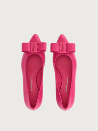 An exciting new icon with an innovative shape. Viva is the new Ferragamo ballet flat with a sophisticated and feminine design; a culmination of iconic elements of the brand with updated shapes. The slightly tapered neckline couples with the oversized bow for a trendy-chic look. Made of very soft nappa leather, it has a tonal painted metal plate and a relief signature with a three-dimensional effect. The teardrop-shaped heel is inspired by the sinuous sculptures of Richard Serra, infusing a contemporary allure. - Heel 2 cm - Composition: nappa leather - Made In ITALY