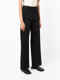 wide-leg trousers black stretch cotton belt loops hook and zip fly fastening wide leg full-length Made in Italy Composition Outer: Cotton 98% Body: Spandex/Elastane 2% SIZE & FIT Model measurements Height 5 ft 10 in(1.77 m) Bust/Chest 31.49 in(80 cm) Hips 35.43 in(90 cm) Waist 25.19 in(64 cm) FittingInformation This piece fits true to size. We recommend you get your regular size Designed to be fitted at the waist, loose over the leg Made with a mid-weight stretch fabric Washing instructions Hand Wash