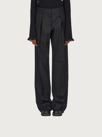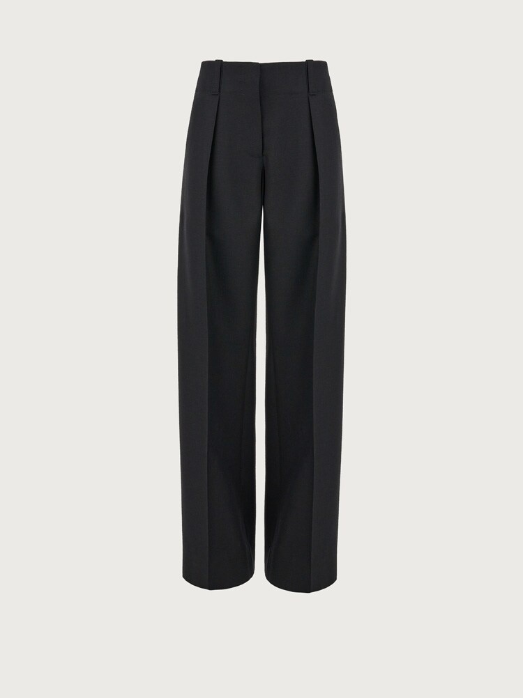 Inspired by classic tailoring, with a contemporary creative twist, these new wide trousers are sure to become a go to for stylish winter looks. Fluid lines with a deconstructed tailoring cut, the blend of wool and mohair enhances the drop of the deep, inverted pleat, while the high waist echoes a modern feel. Pair with a bright sweater or this season’s silk shirt with a half tuck for a look that shows you mean business. Model measurements: Height 5' 10½ "/179 cm ; Bust 31½ "/80 cm; Waist 23½ "/60 cm; Hips 34½ "/87 cm - Composition: 70% pure virgin wool, 30% mohair - Made In ITALY