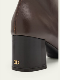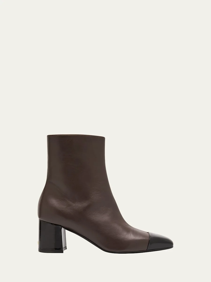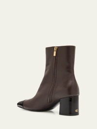 Accented with a contrasting shiny cap toe, the "Sambi" ankle boots by Ferragamo are crafted from smooth Italian calf leather 2.25 in / 55 mm block heel Pointed toe Side zipper for easy on/off Leather lining and outsole Professional cleaning recommended Made in Italy