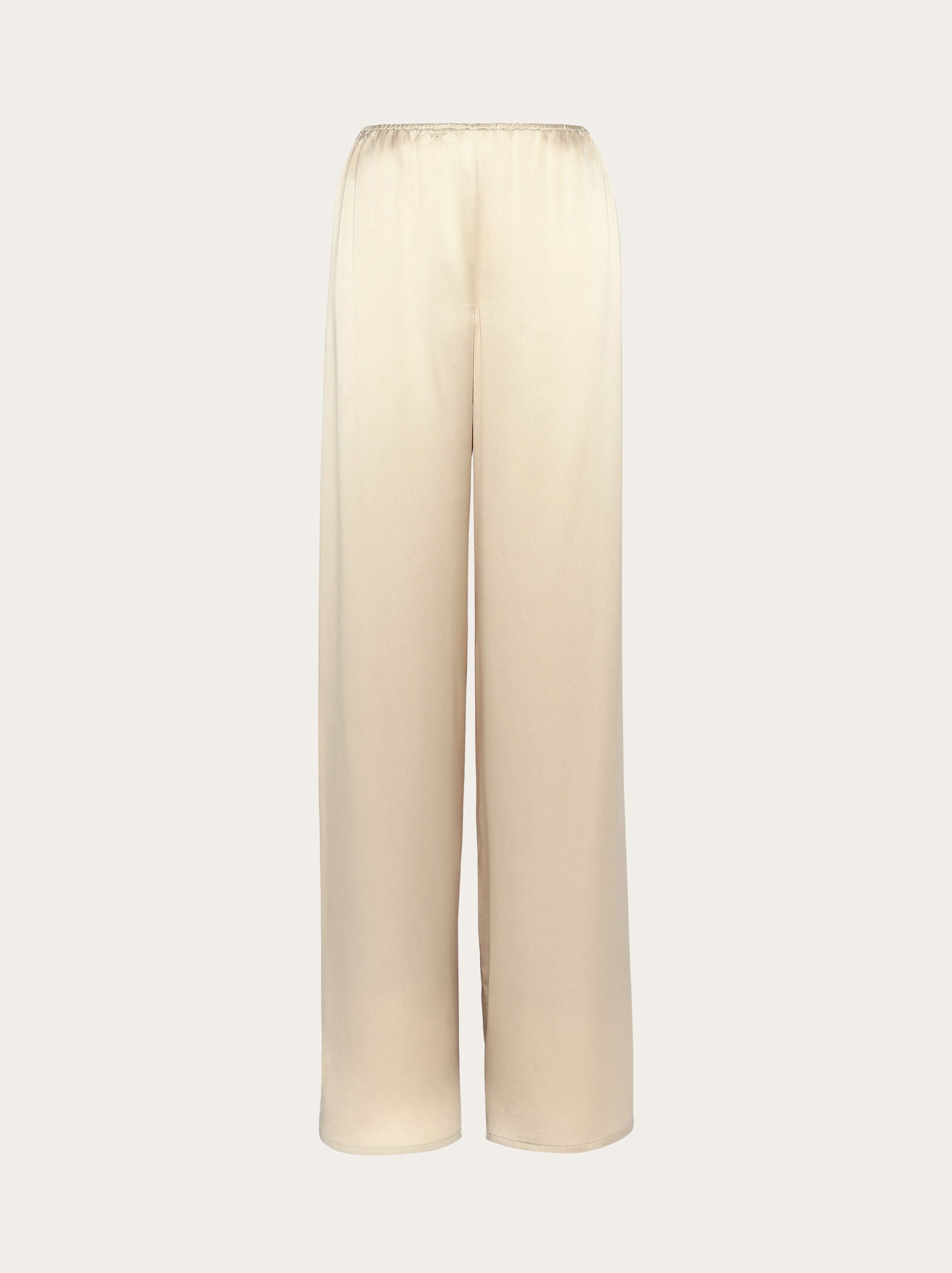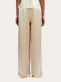Relaxed elegance, bedtime style. With a wide leg and laid back sophistication, these trousers are cut from pure viscose satin. Illuminous and light, they have an elasticated waist and wide leg for a most comfortable fit. The cellulose for the fabric is sourced from forests managed with sustainable principles. - Composition: 100% viscose - Product code: 13C978 770257 - Made in ITALY