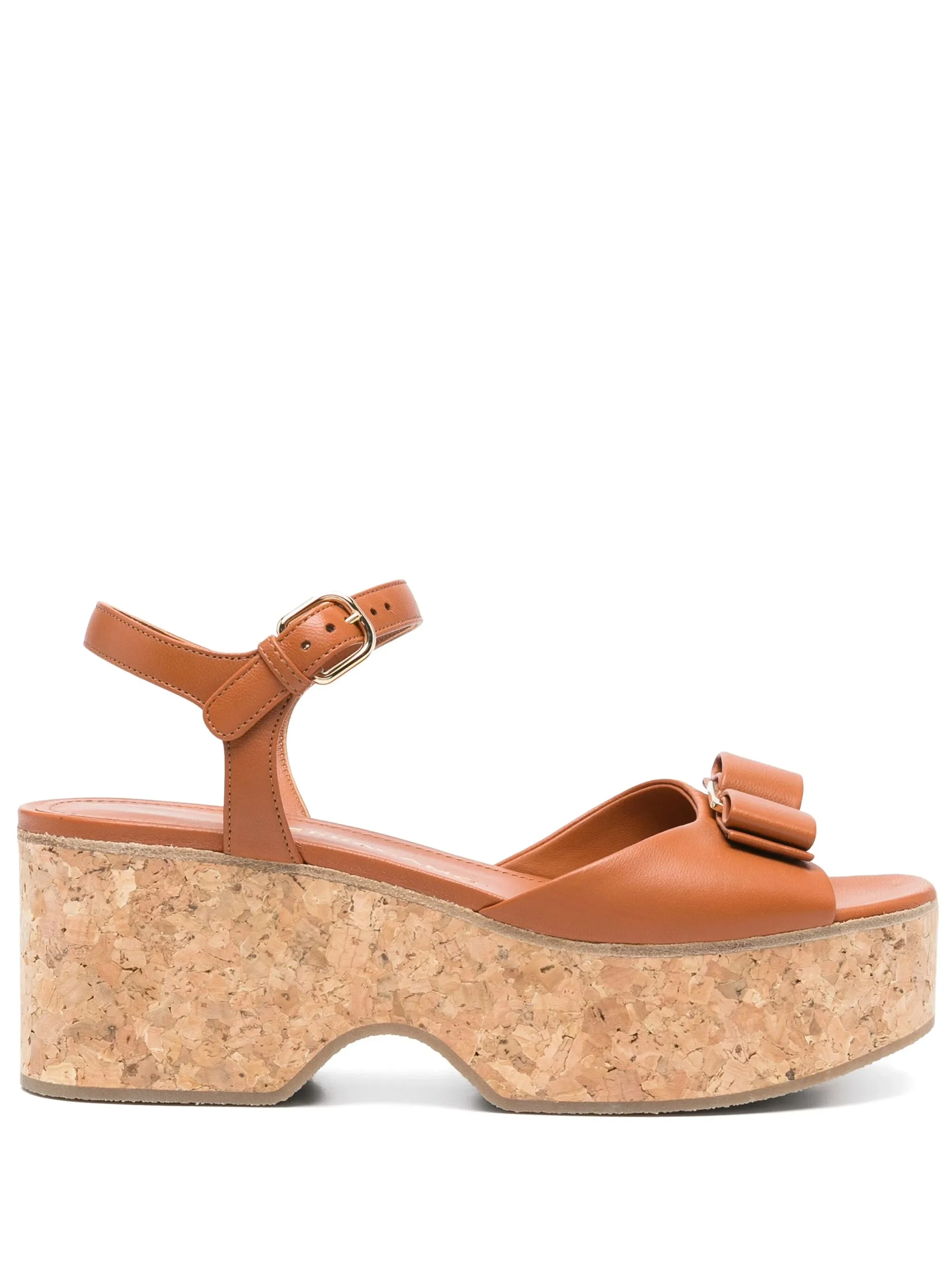 brown leather upper bow detail buckle ankle strap cork platform sole open toe - heel: 7.0 centimetres - Color: BROWN - Made in: Italy - Designer Style ID: 01J920 0782580 1C COGNA Composition and care Outer Composition Lamb Skin: 100.0%, Lining Composition Lamb Skin: 100.0%, Sole Composition Rubber: 100.0%