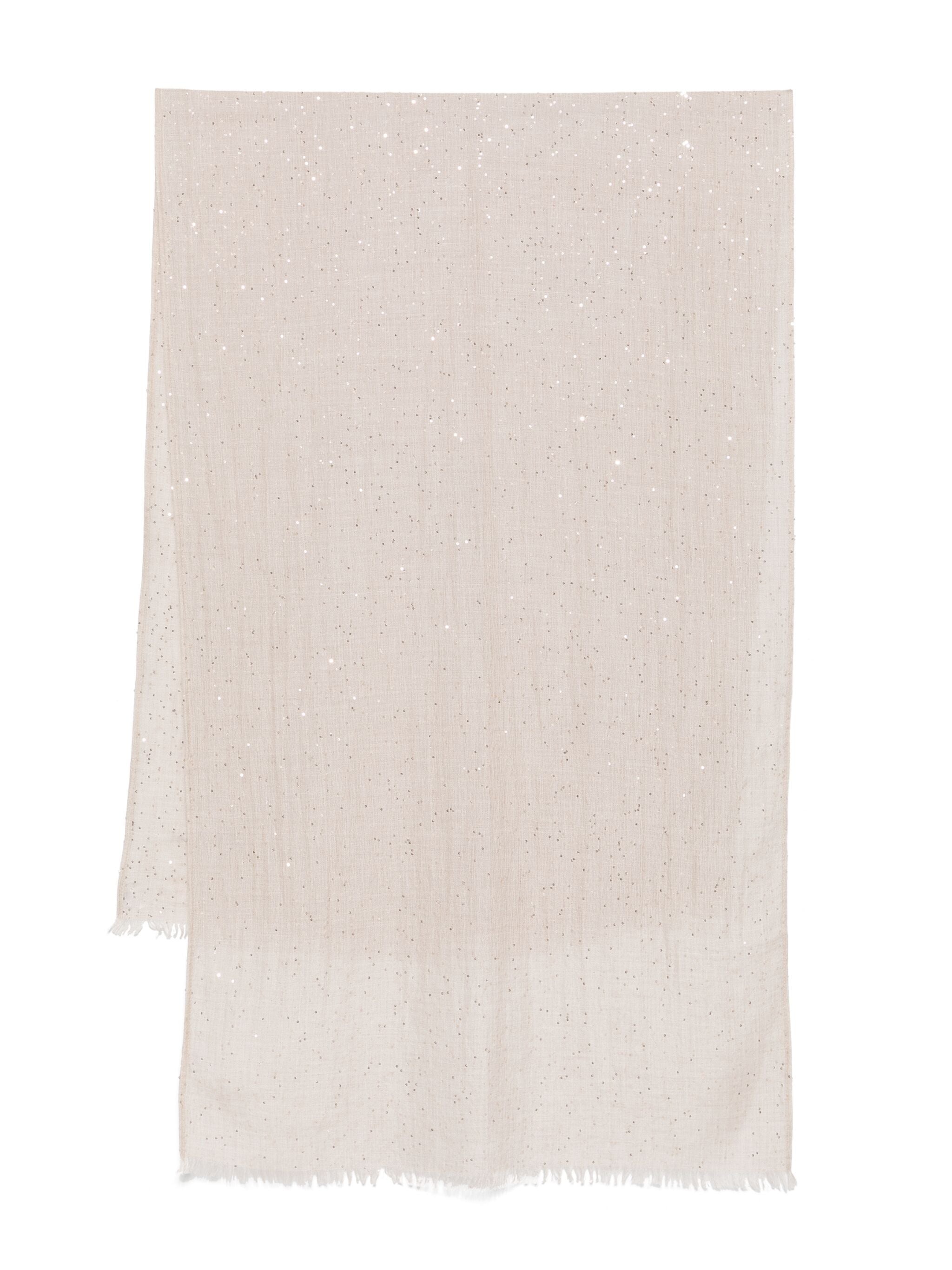beige fringed edge rectangle shape - length: 200.0 centimetres, width: 67.0 centimetres - Color: NEUTRALS - Made in: Italy - Designer Style ID: 320952 0779196 NATUR Composition and care Silk: 26.0%, Polyester: 13.0%, Cashmere: 61.0%