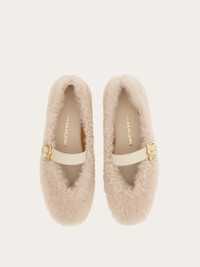 Soft and sumptuous shearling gives this new ballet flat a luxurious yet playful feel. The cosy curly shearling upper is complemented by a tonal leather strap fastened at the side via a golden Gancio buckle. Flexible rubber sole. - Composition: shearling - Made in ITALY - Product code: 01K586 787503