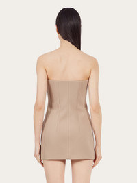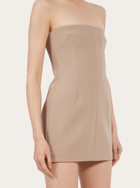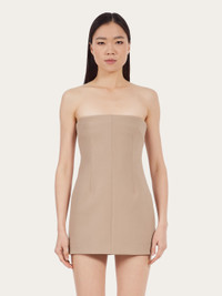 Short bustier dress cut from pure sablé wool. The straight cut collar leads to front and back darts that outline the silhouette. The clean finish is echoed by the hidden zip at the side. Model measurements: Height 5' 10½ "/179 cm; Bust 32½ "/82 cm; Waist 23"/58 cm; Hips 34½ "/88 cm Model wearing: 38 - width 57.0 CM / 22.4 IN - Composition: 100% pure virgin wool - Product code: 13B352 764632 - Made in ITALY