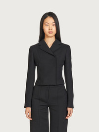 Fine tailoring is one of the pillars of the House of Ferragamo and this wool jacket is no exception. Made of stretch technical wool, it is double breasted with notched lapels and hidden buttons. The embroidery on the cuffs are a chic detail to add a feminine touch to this formal piece, perfect for business attire or when you want to bring out your inner mogul. Pair with the matching trousers for the full effect. Model measurements: Height 5' 10½"/179 cm, Bust 31"/78.5 cm, Waist 24½"/62 cm, Hips 36"/91 cm - Composition: 50% pure virgin wool, 47% polyamide, 3% elastane - Made In ITALY