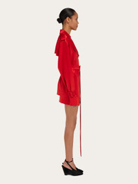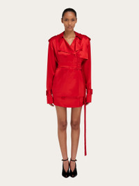 The liquid texture of the fluid viscose satin gives this unexpected trench an impeccable drape. Cinched at the waist via a tonal belt, this expression of poetic duality runs throughout the collection. Functional features are all present and correct: the shirt cuffs, wrist straps, back yoke and double button fastening along the front are textbook trench coat. - Composition: 100% viscose - Made in ITALY - Product code: 13H490 788176