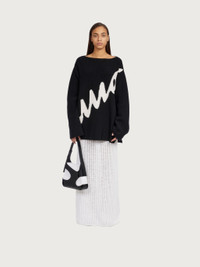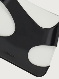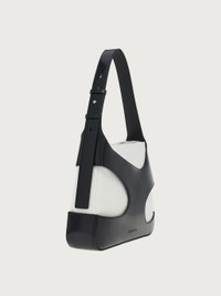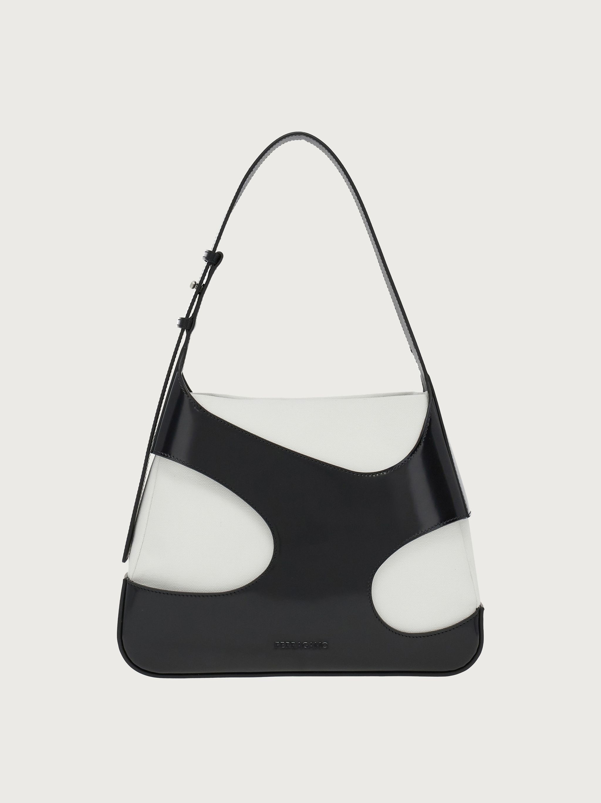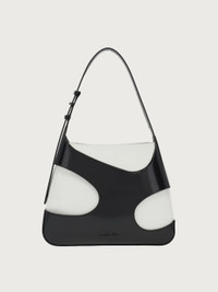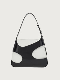 A new avant-garde take on the shoulder bag with a brushed calfskin structure. The cut-out lines provide a glimpse of the second inner shell, made from canvas in contrasting hues. Large and spacious, it is complemented by the zipped pocket and slots. Adjustable shoulder strap. - height 42.0 CM / 16.5 IN length 28.5 CM / 11.2 IN width 7.5 CM / 2.9 IN - Composition: calfskin and fabric - Product code: 213959 762303 - Made in ITALY