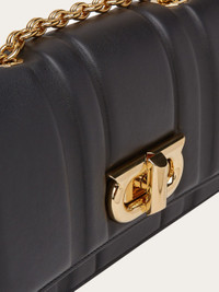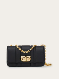 A new Ferragamo model for this shoulder bag that comes decorated with geometric quilting. The understated construction features a lined interior, a double flat pocket and an adjustable shoulder strap for two ways of carrying it. Twist lock with the new, antiqued-finish Gancini accent. - height 14.0 CM / 5.5 IN length 25.0 CM / 9.8 IN width 9.0 CM / 3.5 IN - Composition: calfskin - Product code: 214973 765522 - Made in ITALY