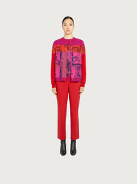 So much more than a cardigan. Heritage prints and the highest quality materials come together to create this chic little cover up. The waffle knit, wool is complemented by silk panels on the front and back, printed with heritage designs, in bold, seasonal hues for an eye-catching look. Wear with the matching t-shirt for an original twin set. Made using wool derived from responsible sources with high standards of animal welfare and land stewardship. Model measurements: Height 5' 10½ "/179 cm; Bust 32½ "/82 cm; Waist 23"/58 cm; Hips 34½ "/88 cm - Composition: silk and responsibly sourced wool - Made In ITALY