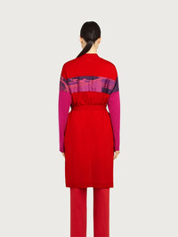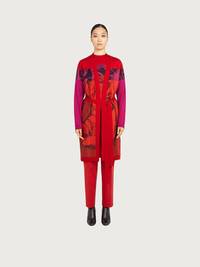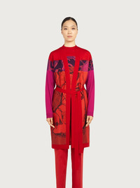 A super chic statement piece to bring a bold splash of color to your wardrobe. The absolute finest in easy-chic, this cardigan is made of pure, wool, derived from responsible sources with high standards of animal welfare and land stewardship, with printed silk panels on the front and back. The print is a twist on heritage designs, revised in bright, seasonal hues. Model measurements: Height 5' 10½ "/179 cm; Bust 32½ "/82 cm; Waist 23"/58 cm; Hips 34½ "/88 cm - Composition: silk and responsibly sourced wool - Made In ITALY