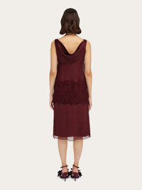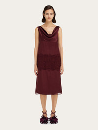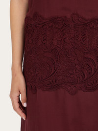 A contemporary reinterpretation of 1920’s elegance, this slip dress is the perfect cocktail of silk chiffon, viscose satin and cotton lace. The gathered neckline implies a sensual appeal, echoed by the wide band of lace around the hips and see though details. Sophisticated sauntering is an absolute must. - Composition: 100% silk - Made in ITALY - Product code: 13H645 788203