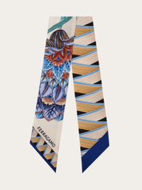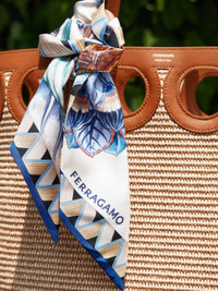 A most versatile accessory, the silk bandeau can be worn in your hair, around your neck, as a belt, or used to decorate your bag; the options are endless! This iteration is decorated with the Giada motif. - length 55.1 IN width 2.7 IN - Composition: 100% silk - Made in ITALY - Product code: 321134 785364
