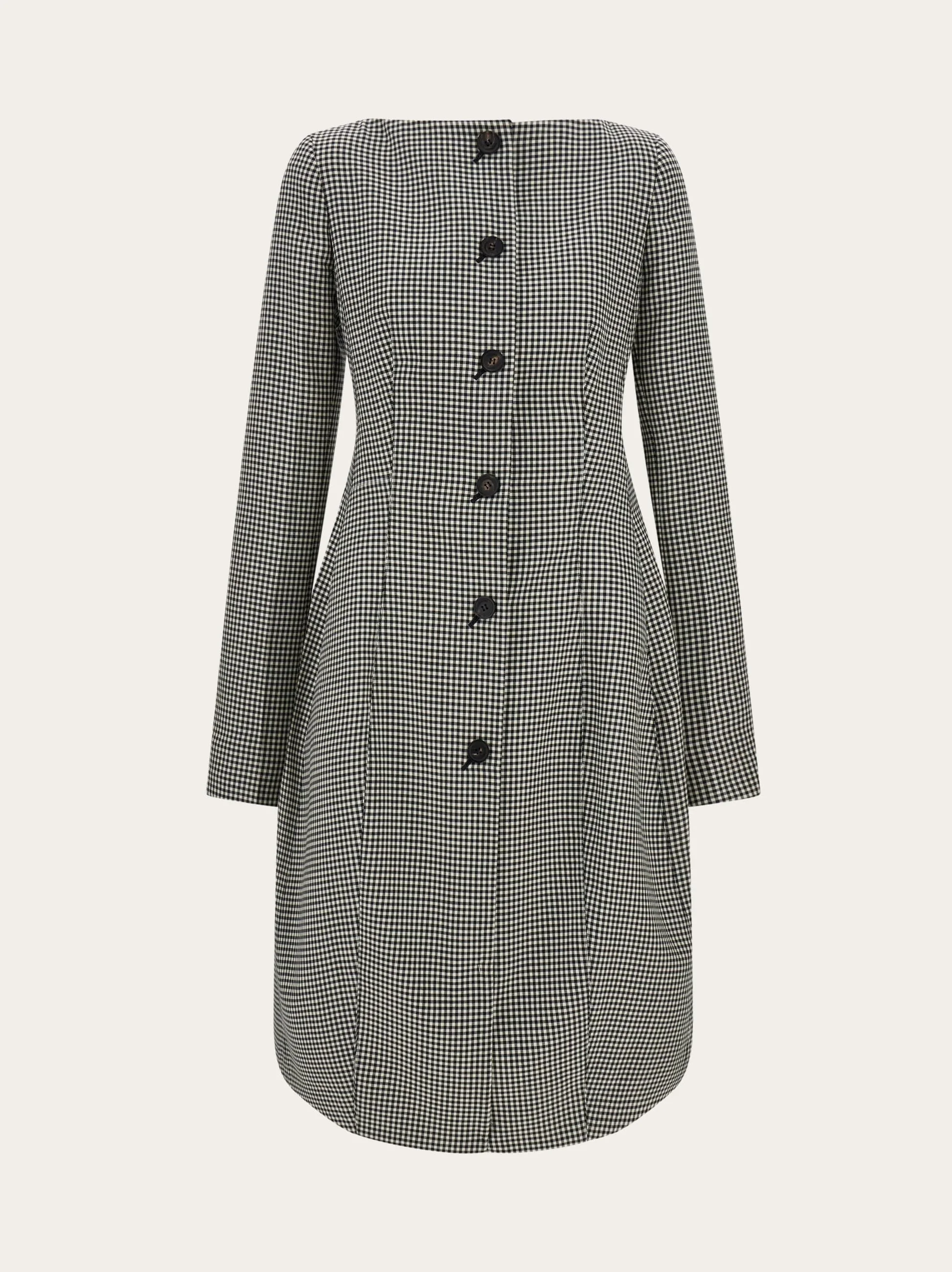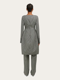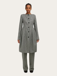 A very feminine silhouette with a high-fashion twist, this single breasted coat is made from a blend of pure wool and silk. The clean line of the luxurious fabric features a boat neck and back darts that create volume from the waist, with pressed pleats along the sleeves. Signature diagonal eyelets complete the design. - Composition: 98% pure virgin wool, 2% silk - Model measurements: Height 5' 9"/175 cm; Bust 30"/76 cm; Waist 24"/61 cm; Hips 34½"/87 cm - Model wearing: 38/XS - Made in ITALY - Product code: 13H189 784777