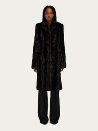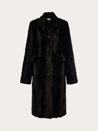 High end glam meets urban style in this new single-breasted coat. A mix of mink-effect faux fur lined with technical satin, it has a straight cut across the bust and a somewhat eighties aesthetic with a contemporary twist. - Composition: 83% modacrylic, 17% polyamide - Made in ITALY - Product code: 13H768 788334