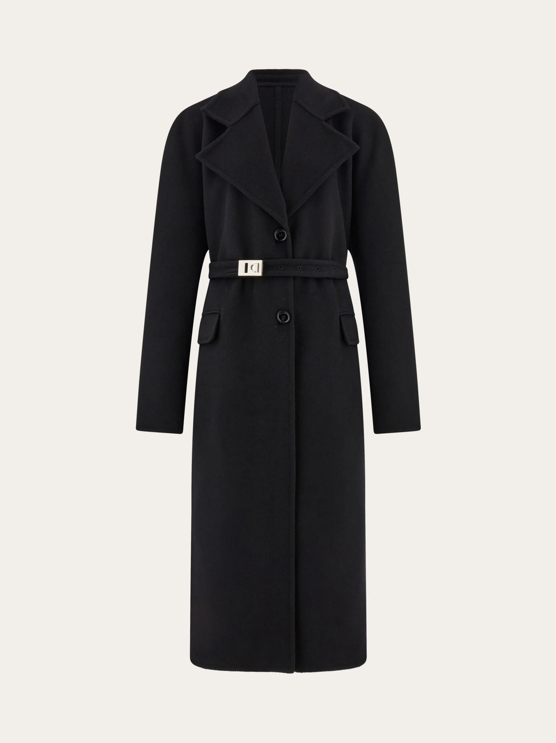 Soft and lustrous virgin wool and cashmere coat; the perfect investment piece for timeless style. Kimono sleeves echo the soft and enveloping volume, with maxi lapels and an unlined finish for a lighter feel. Meticulous stitching outlines the construction, with side flap pockets and the iconic Hug buckle on the adjustable fabric belt. - Composition: 85% pure virgin wool, 15% cashmere - Model measurements: Height 5' 10"/178 cm; Bust 31½ "/80 cm; Waist 23½"/60 cm; Hips 34 "/88 cm - Model wearing: 38 - Made in ITALY - Product code: 13G412 780948