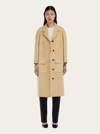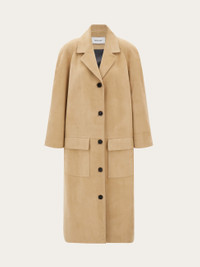 A wonderful balance of contemporary tailoring and timeless style, this single breasted coat, cut from the softest nappa suede, is designed to last. The rounded shoulder adds a feminine feel to the straight cut, while simple horn buttons peep through diagonal eyelets along the clean cut placket. Large flap pockets add a masculine twist at the front, and a large slit is placed at the back. - Composition: nappa suede - Made in ITALY - Product code: 13I020 790646