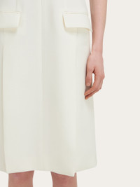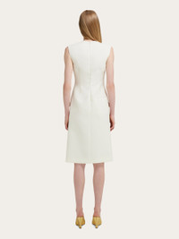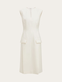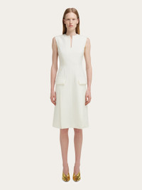 A chic cocktail of tailored cuts, urban style and feminine flair: sleeveless pure wool dress with soft yet decisive lines featuring deep pleats and hip pockets inspired by a classic blazer. Overlapping thigh slits confirm a sensual appeal. - Composition: 100% pure virgin wool - Made in ITALY - Product code: 13H764 788332