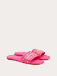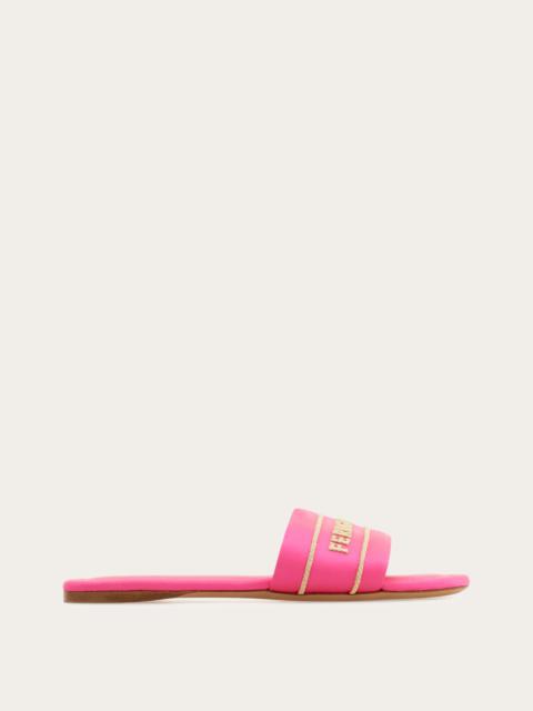 Laid back and luxurious, this easy Ferragamo slide is the perfect slip on to complete summer looks. The wide satin band that softly wraps the toes is embroidered with the same luxurious logo that is printed on the padded insole. Simply chic. - Composition: fabric - Made in ITALY - Product code: 01J740 781254