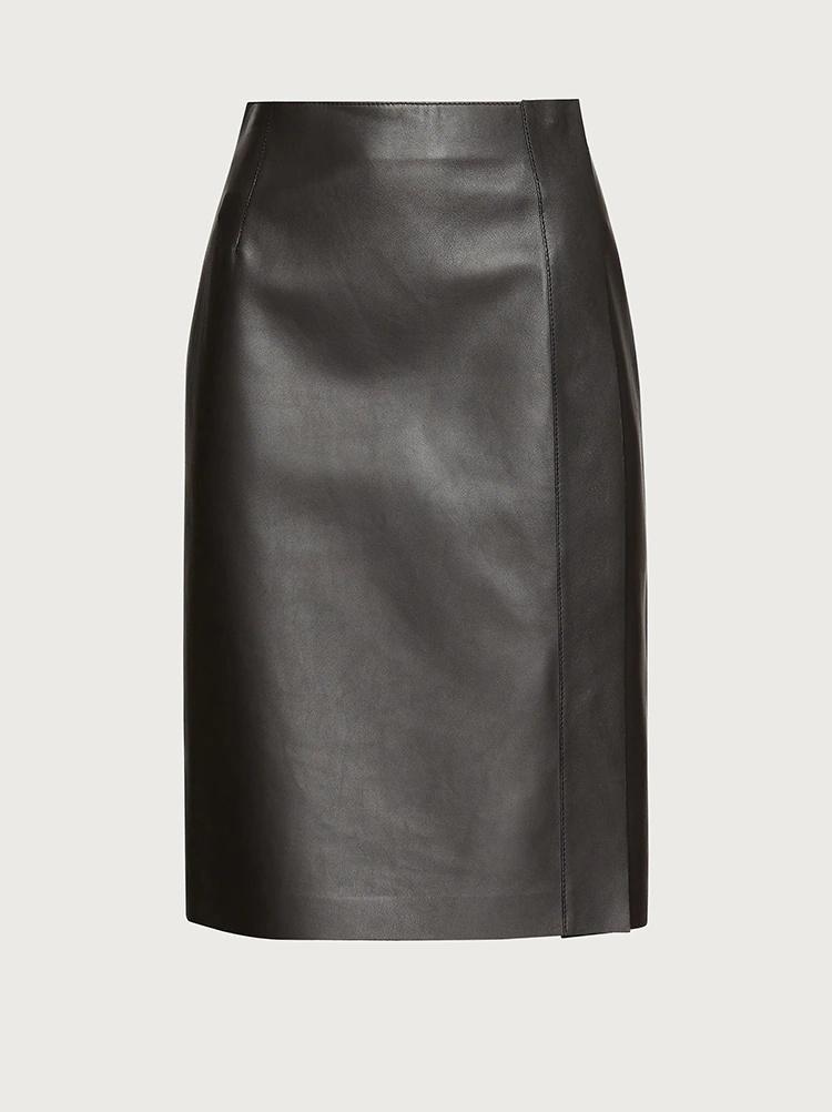 The leather skirt is one of the most versatile wardrobe staples that every girl simply must have in her arsenal. This original edition is made of soft, plongé nappa with a straight cut and a sensual outline, thanks to the buttoned wrap feature with side slit. The snap buttons add a touch of grit. Pair with the nappa leggings for a full leather look, or alone with a simple crew neck sweater for laid back chic. Model measurements: Height 5' 10½ "/179 cm; Bust 30"/76 cm; Waist 23"/58.5 cm; Hips 35 "/89 cm - Composition: nappa leather - Made In ITALY