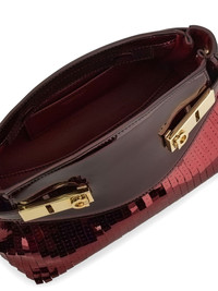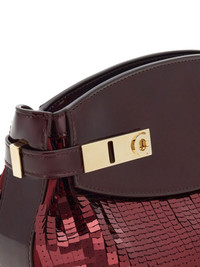 small Hug crossbody bag Highlights - Burgundy - Calf leather - Magnetic fastening - Adjustable detachable shoulder strap - Sequin embellishment - Engraved logo - Main compartment - Internal slip pocket Made in Italy Composition Outer: Patent Calf Leather 100% SIZE & FIT Measurement STRAP 21.65 in(55 cm)