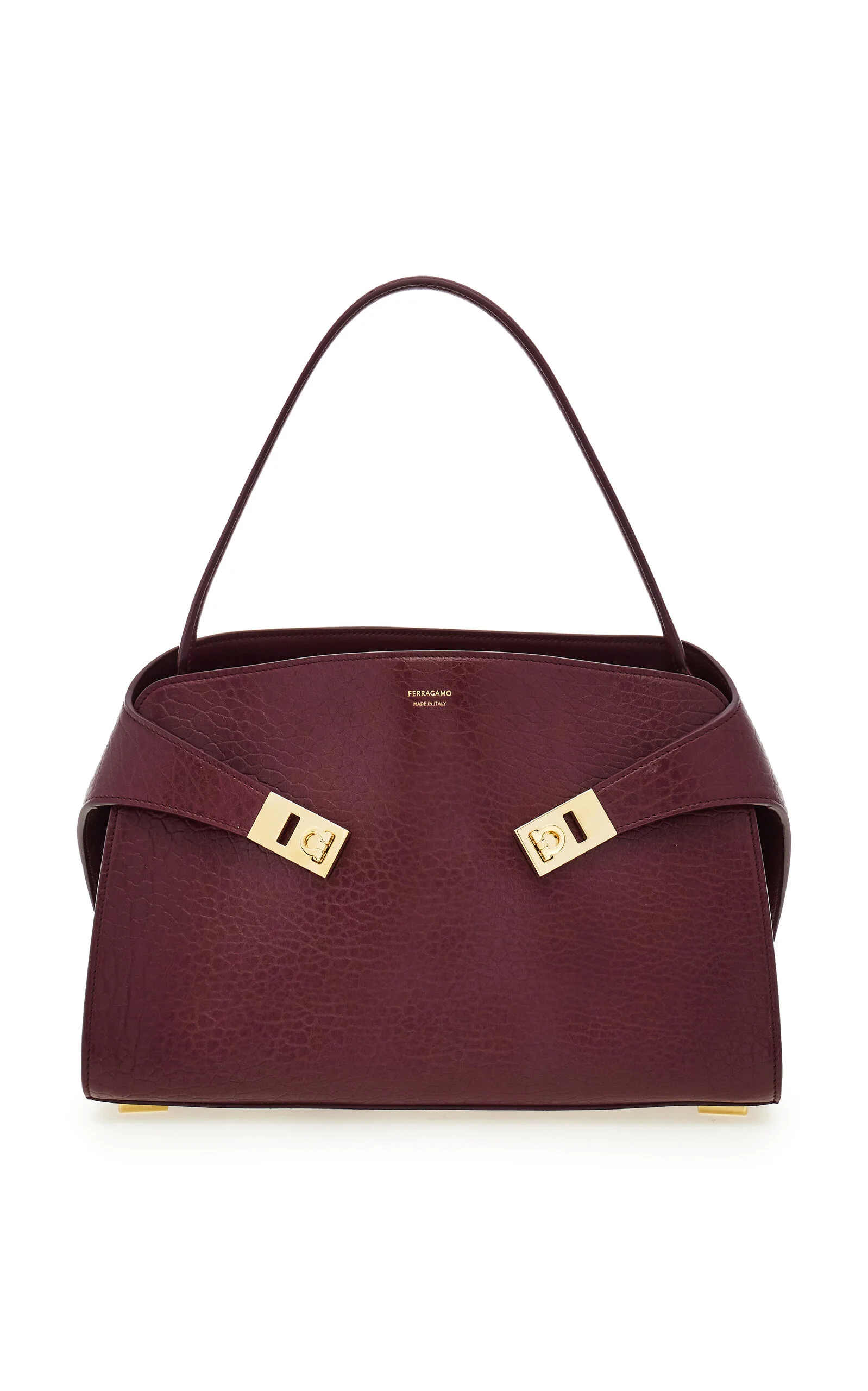 The epitome of everyday luxury, Ferragamo was founded in 1927 by legendary designer Salvatore Ferragamo, known as the "shoemaker to the stars." Under the design direction of Maximilian Davis, today the Florentine house pays homage to the founder's legacy by fusing enduring Italian craftsmanship and contemporary design — with environmental sustainability at its core. Iconic 'Hug' Gancio hardware, contrast lining, feet, magnetic flap closure. PRODUCT DETAILS - This item is not eligible for expedited shipping - Magnetic fastening - Composition: 100% calfskin leather; Lining: 80% lambskin, 20% calfskin - Made in Italy