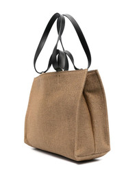 medium logo tote bag Highlights - Light brown/black - Raffia-effect fabric - Leather trim - Jacquard logo motif - Two top handles - Two flat shoulder straps - Main compartment - Internal zip-fastening pocket - Full lining - Gold-tone hardware Made in Italy Composition Outer: Fabric 100%, Calf Leather 100% SIZE & FIT Model measurements Height 5 ft 10 in(1.77 m) Bust/Chest 29.92 in(76 cm) Hips 33.46 in(85 cm) Waist 23.62 in(60 cm) Measurement DEPTH 5.51 in(14 cm) HANDLE 3.93 in(10 cm) HEIGHT 10.62 in(27 cm) STRAP 21.65 in(55 cm) WIDTH 13.38 in(34 cm)