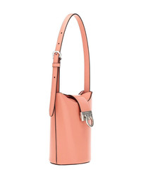 small Trifolio shoulder bag Ferragamo combines features from the bucket bag and the shoulder bag to create this hybrid silhouette. The design remains faithful to the geometric rules of the Trifolio collection, with its impeccably crafted structured shape. Functionality is fused with style in the way the Gancini flip-lock fastening reveals a lip closure at the top. Made in Italy Composition Outer: CALFSKIN 100% Lining: Lambskin 100% SIZE & FIT Measurement DEPTH 3.93 in(10 cm) HEIGHT 7.48 in(19 cm) WIDTH 5.11 in(13 cm)
