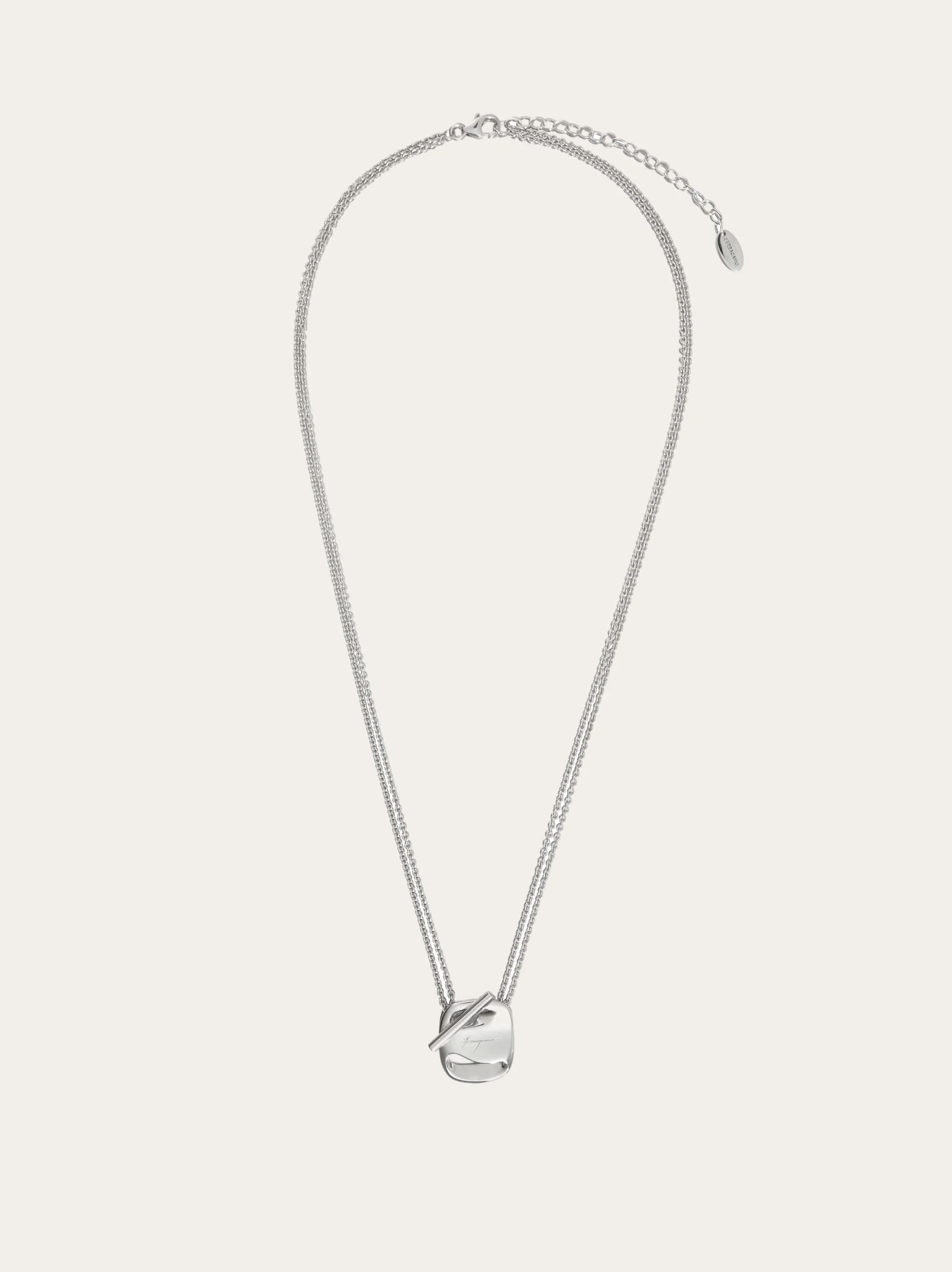 Double chain necklace made of pure silver, decorated with a pendant inspired by the Vara buckle, revisited with organic lines. The rhodium-plated finish ensures shine and durability, with an anti-oxidation effect. - length 16.5 IN - Composition: 100% silver - Small - Made in ITALY - Product code: 780024 780637