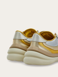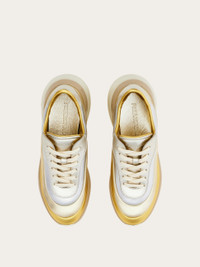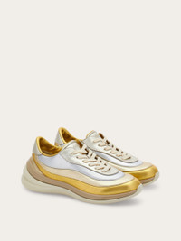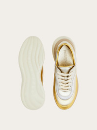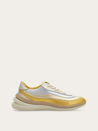 A savvy mix of an iconic nineties silhouette and the unmistakable Rainbow shoe, this new nappa sneaker has a street style outline with artistic details. The gradient of wavy colors stripes is set on an ultra-light rubber sole with custom tread. - Composition: laminated nappa - Made in ITALY - Product code: 030741 790294