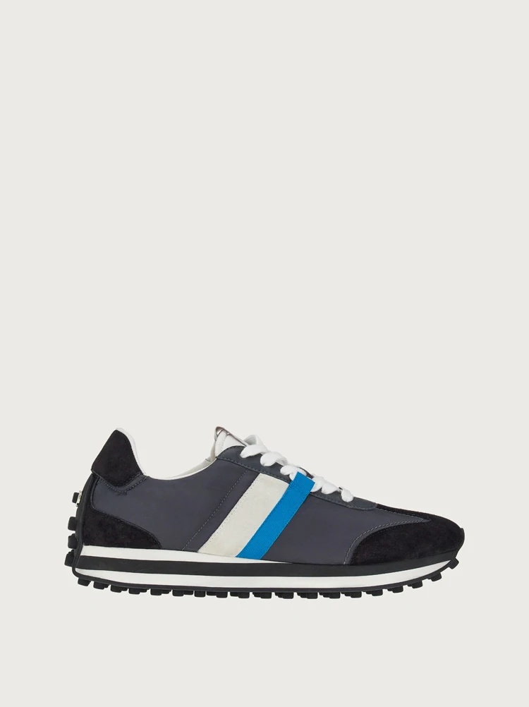 Light and ultra-cool, these are the perfect off-duty shoes. The cross gender sneaker collection is a mix of responsible materials and high tech, in a design that is the emblem of contemporary style. The upper is realized in ECONYL®, a fibre 100% regenerated from fishing nets and other nylon waste, and details are in leather made giving a second life to manufacturing scraps resulting from a production process with reduced carbon emissions. Fussbett and back lining are in leather tested and verified to have been produced using a chrome-free tanning process and strobel felt contains recycled pre-consumer polyester fibres. The sewing thread is made from 100% post-consumer recycled polyester. Super light rubber sole with custom tread that wraps the heel. - Composition: leather and ECONYL® regenerated nylon - Made In ITALY