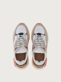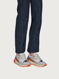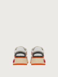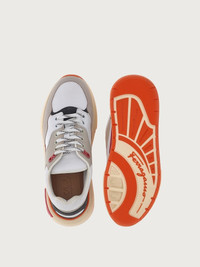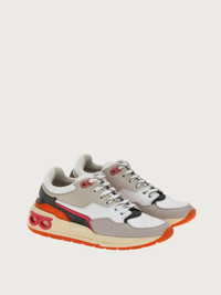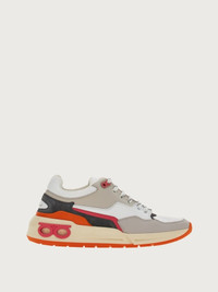 The coolest new edition to this season’s trainer line, Ferragamo launch the new chunky lace-up, bursting with nineties vibes. This new take on a beloved silhouette is gritty, yet luxurious, trendy, and timeless. Textured leather and geometric patterns light up the upper with suede inserts and colored details bringing movement and texture. The chunky, ultra-light rubber sole features a double Gancio on the side. - Composition: calf leather and fabric - Made In ITALY
