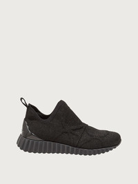 This sock sneaker is made of technical fabric with lurex inserts. The maxi Gancini embossed on the upper adds a 3D effect to the luminous fabric. The thick, wavy sole is inspired by the iconic Fiore heel. Ideal for strolls in the city or to add a touch of fashion to a sporty look. - Heel 1cm - Composition: Technical fabric - Made In ITALY