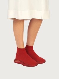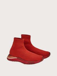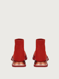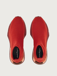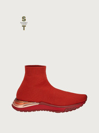 Super high tech sock sneaker with a responsible soul. Realized with a resistant high tech material made from 100% recycled and certified polyester with internal support to retain its shape, this shoe is luxurious and trendy. The ultra light rubber sole has a high-shine ripple effect at the heel in bright metallic accent shades, a most glamorous touch. - Heel 1 cm - Composition: Recycled and certified fabric - Made In ITALY