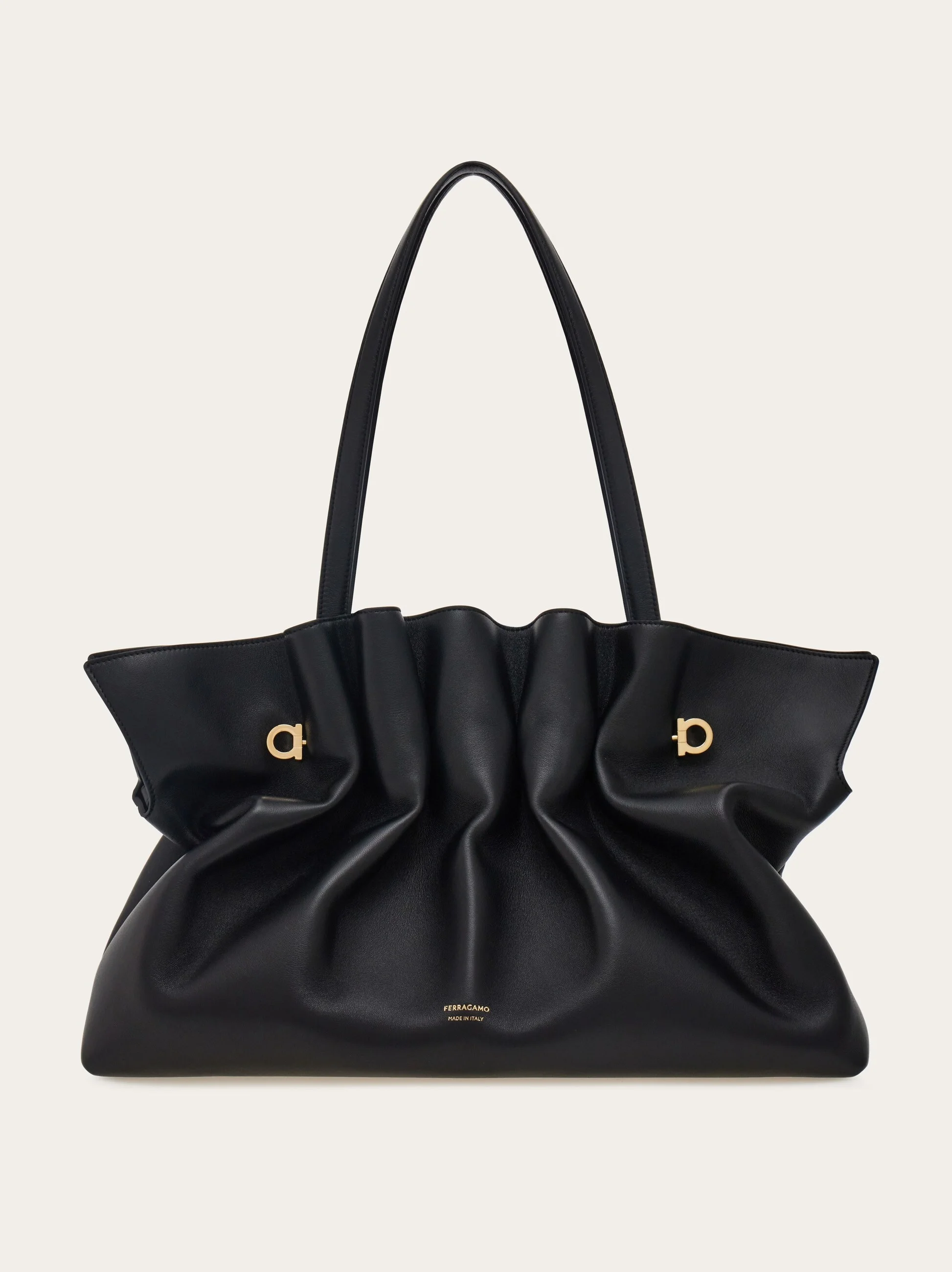 Minimum fuss maximum impact. The clean cut silhouette of this new shoulder bag is pierced along the top by a Gancio pin that gathers the sumptuous nappa leather into voluptuous folds. Inspired by an archive design, this is the new must have for the girl on the go. - A) Height 11.8 IN B) Length 17.3 IN C) Width 5.7 IN - Composition: nappa - Handle drop: 10.6 in/27 cm - Large - Made in ITALY - Product code: 219961 783292