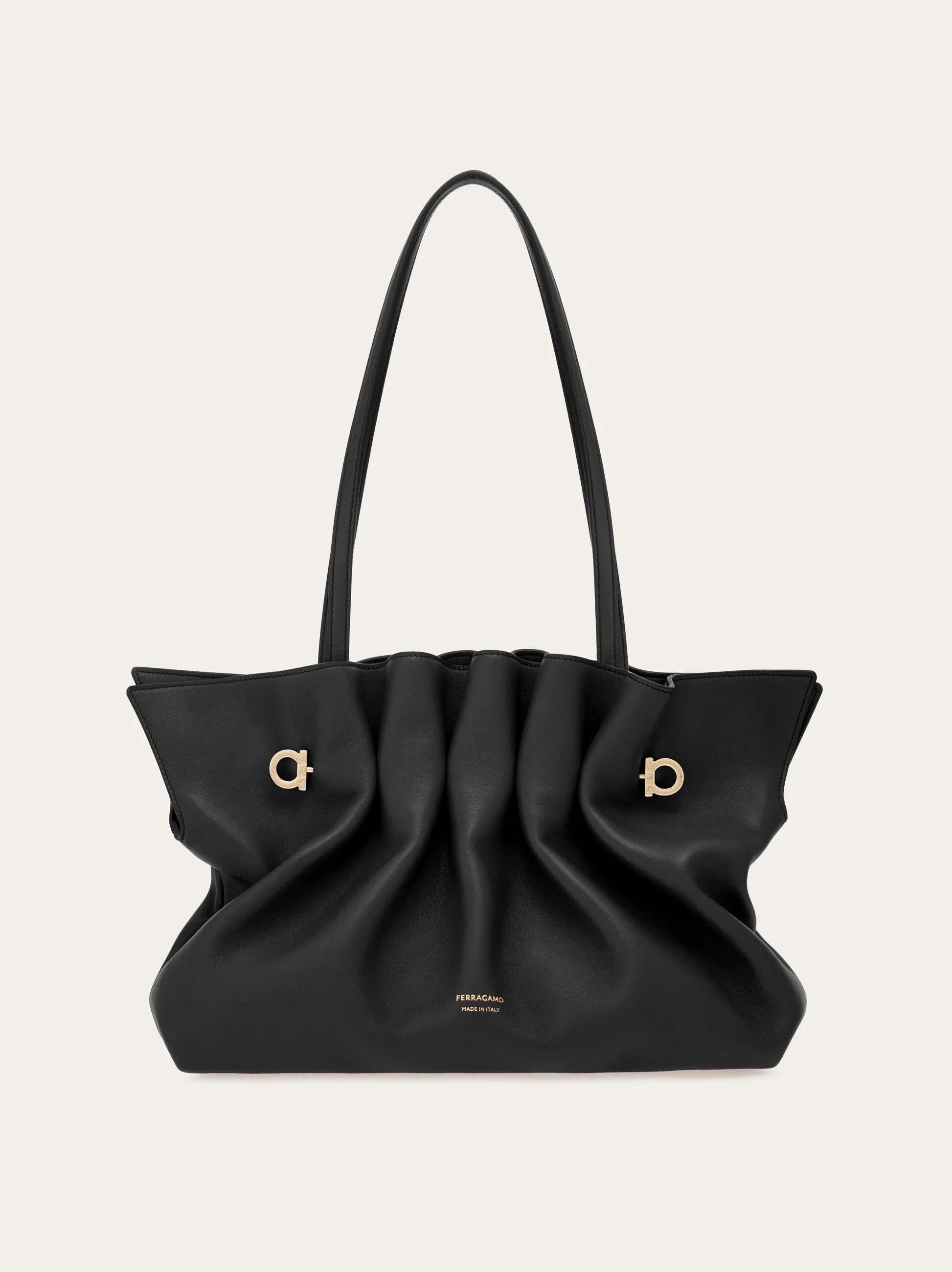Minimum fuss maximum impact. The clean cut silhouette of this new shoulder bag is pierced along the top by a Gancio pin that gathers the sumptuous nappa leather into voluptuous folds. Inspired by an archive design, this is the new must have for the girl on the go. - A) Height 9.6 IN B) Length 13.7 IN C) Width 4.7 IN - Composition: nappa - Handle drop: 10.2 in/26 cm - Medium - Made in ITALY - Product code: 219960 783286