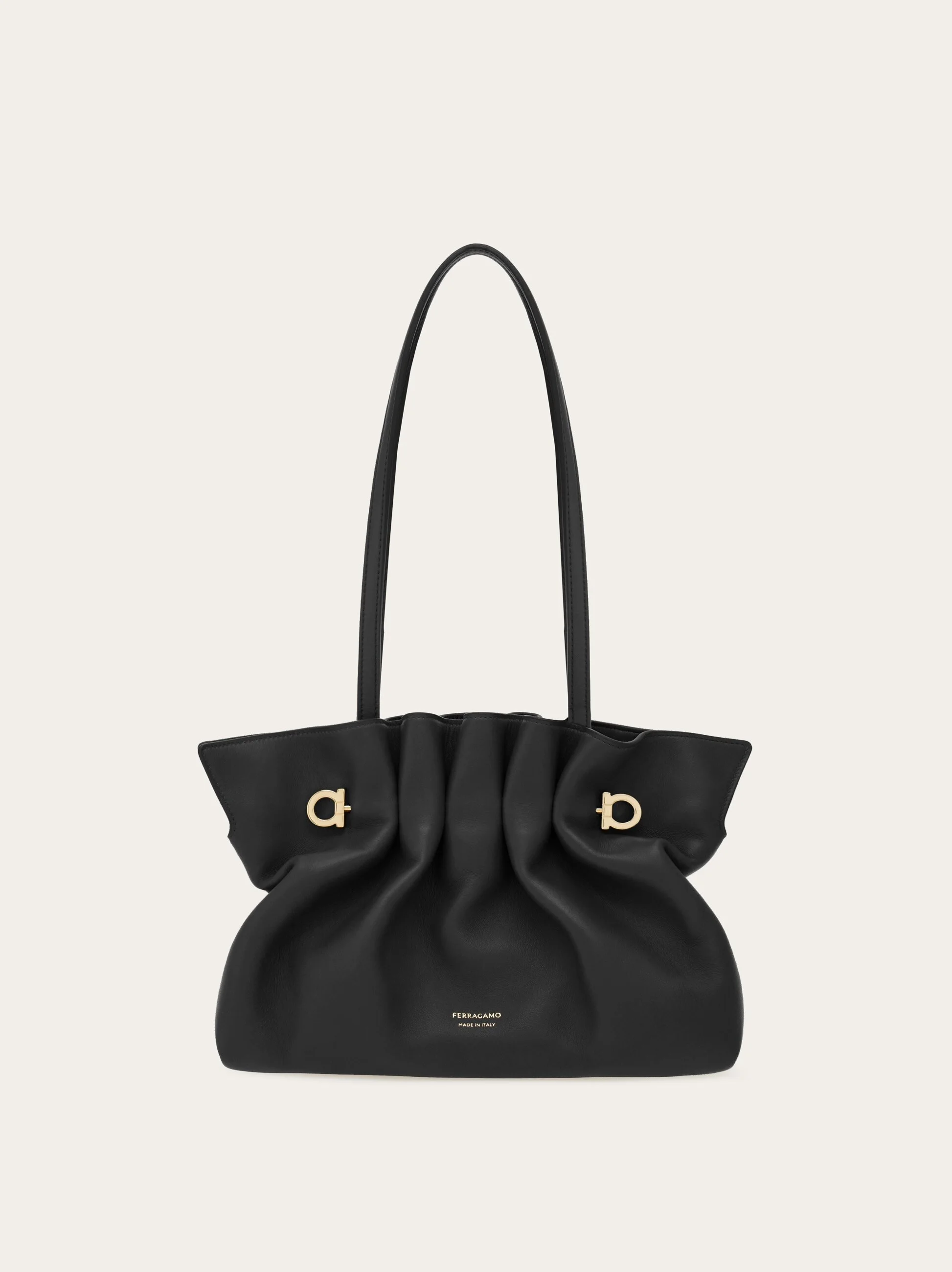 Minimum fuss maximum impact. The clean cut silhouette of this new shoulder bag is pierced along the top by a Gancio pin that gathers the sumptuous nappa leather into voluptuous folds. Inspired by an archive design, this is the new must have for the girl on the go. - A) Height 7.0 IN B) Length 10.6 IN C) Width 4.3 IN - Composition: nappa - Handle drop: 9.4 in/24 cm - Small - Made in ITALY - Product code: 219959 783294