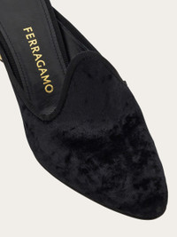 Vintage-inspired yet utterly modern: this mule in precious moire velvet illuminates every look. The high square vamp creates a distinctive contrast with the golden spherical heel, modeled on heritage styles. Thin leather sole with non-slip rubber inserts. - Composition: fabric - Made in ITALY - Product code: 01K438 784892